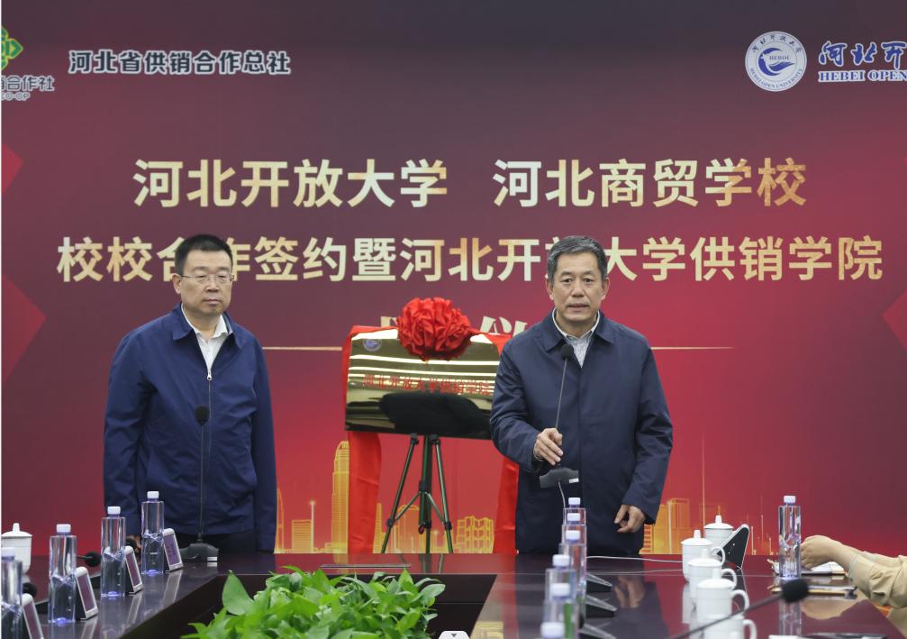 校黨委常委、副校長張瑞海在致辭中表示,“河北開放大學(xué)供銷學(xué)院”是開放大學(xué)一體化辦學(xué)體系中的重要組成部分,通過建立健全共商共建共治共享新機(jī)制,共商特色專業(yè)設(shè)置、共建優(yōu)質(zhì)課程資源、共治教育教學(xué)管理、共享專業(yè)師資隊(duì)伍,培養(yǎng)適應(yīng)行業(yè)發(fā)展需要的高素質(zhì)技能型應(yīng)用人才,將學(xué)院打造成為校校合作模式下人才培養(yǎng)和科技服務(wù)的應(yīng)用型專業(yè)學(xué)院的示范。