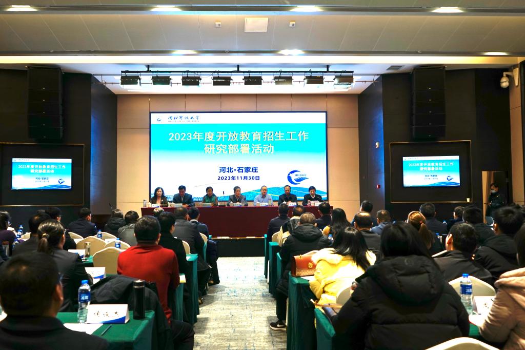 11月30日,全省開大體系2023年度開放教育招生工作會議在石家莊召開。河北開放大學黨委書記籍獻平出席會議并講話,國家開放大學教務部部長古小華出席會議并做專題報告,省校領導班子成員,部分設區市開大黨委書記、校長,各市開大主管開放教育招生工作的校領導、開放教育招生管理部門負責人,85個縣級開大(學習中心)負責人及省校開放教育學院全體人員共計140余人參加了會議。會議由河北開放大學副校長張瑞海主持。