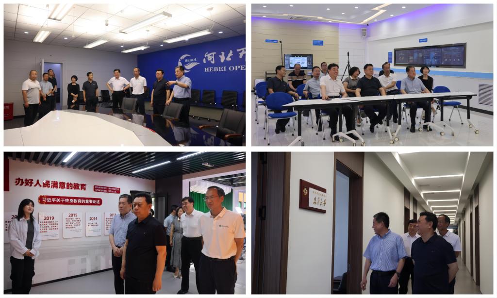 朱政學一行實地參觀了學校遠程學習體驗中心、校史展廊、政協委員之家、教師及黨建主題文化空間等,觀看了河北終身學習在線學習平臺演示,了解了河北開放大學文化一體化建設情況,聽取了國家老年大學河北分部建設方案。