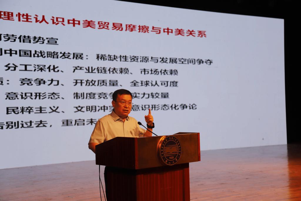 調研結束后,田學斌應邀前往燕山大學,就人才培養、校企與校校合作等重要議題與燕山大學相關領導深入交流,并為1000余名燕山大學學子作了題為《中美貿易關系的形勢與展望》的主題報告。