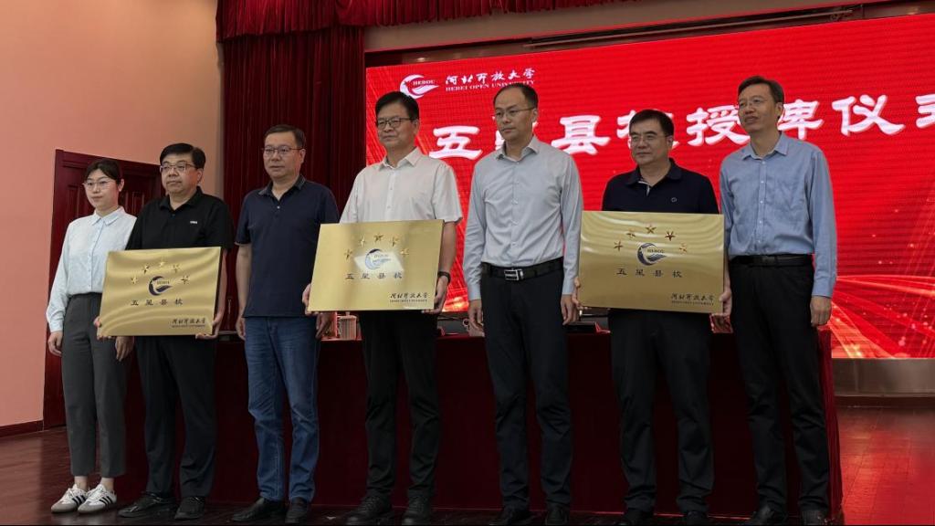 活動中舉行了五星縣校授牌儀式,為新調整為五星的淶水開放大學、唐縣開放大學、鹽山開放大學授予星級牌。并組織三所新升星縣校校長作典型發言,介紹本校以評促建、跨越發展的實踐經驗。
