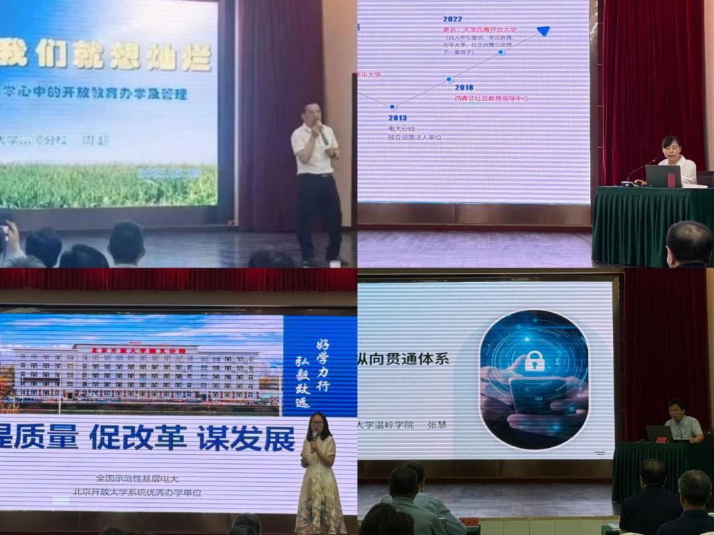 活動邀請了浙江開放大學溫嶺學院黨委書記、院長張慧,四川自貢開放大學富順分校黨總支書記、校長周超,北京開放大學順義分校副校長王云,天津西青開放大學副校長李穎分別做經驗分享,介紹省外先進縣校的辦學經驗,與會人員反響熱烈。