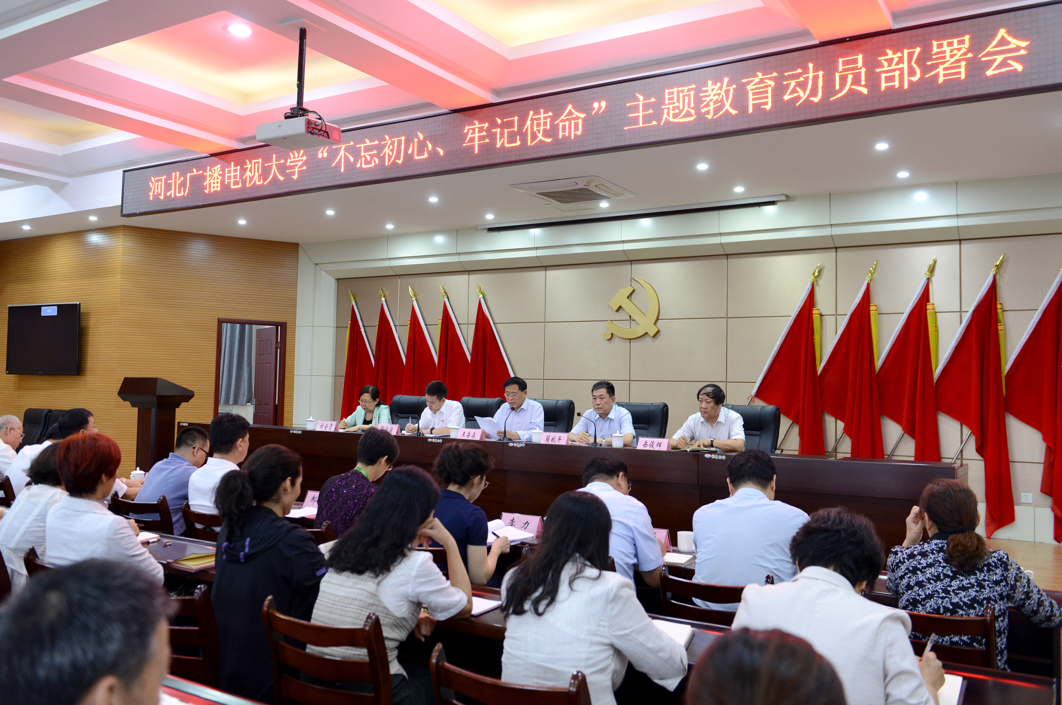 9月11日下午,我校在終身教育大講堂召開 “不忘初心、牢記使命”主題教育動員部署會議,校黨委書記籍獻平作動員講話。省委第八巡回指導組到會指導,組長王岳森作重要講話。校黨委副書記、校長段潤保主持會議。