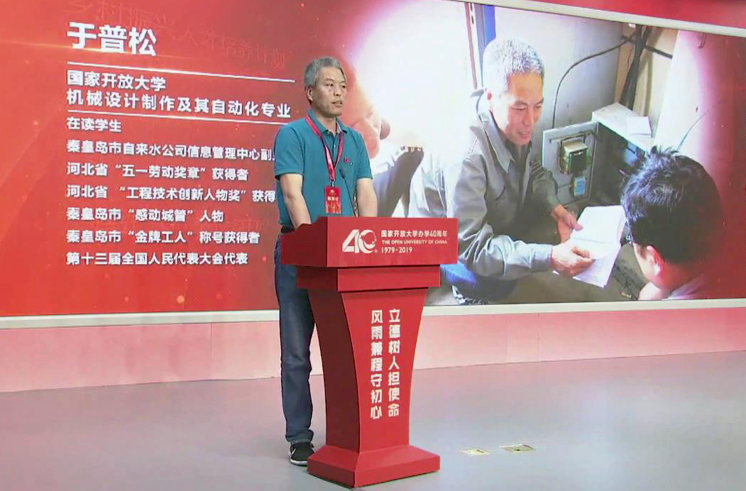 為紀念鄧小平同志批示創辦廣播電視大學40周年,進一步貫徹落實黨的十九大精神、全國教育大會精神,全面總結學校辦學經驗,推進開放大學戰略轉型升級,國家開放大學總部于6月21日(教育部批準建立國家開放大學日)在北京召開紀念國家開放大學辦學40周年大會,我校杰出校友代表于普松、張國橋受邀參加本次校慶活動。于普松做為學生代表在大會上發言。