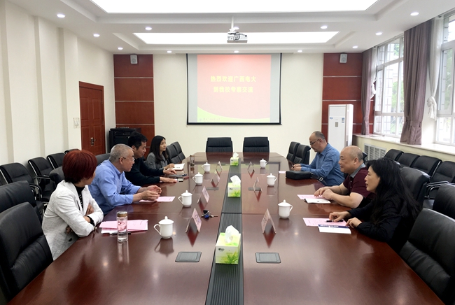 5月8日,廣西廣播電視大學開放教育學院院長黃耀成、招生與學生服務中心副主任陳向東及桂林市廣播電視大學校長林明一行三人到我校考察交流。我校武喜春副校長熱情接待了到訪客人。雙方在辦公樓一樓會議室進行了深入座談,我校開放教育學院、教務處負責人及相關人員參加了座談。