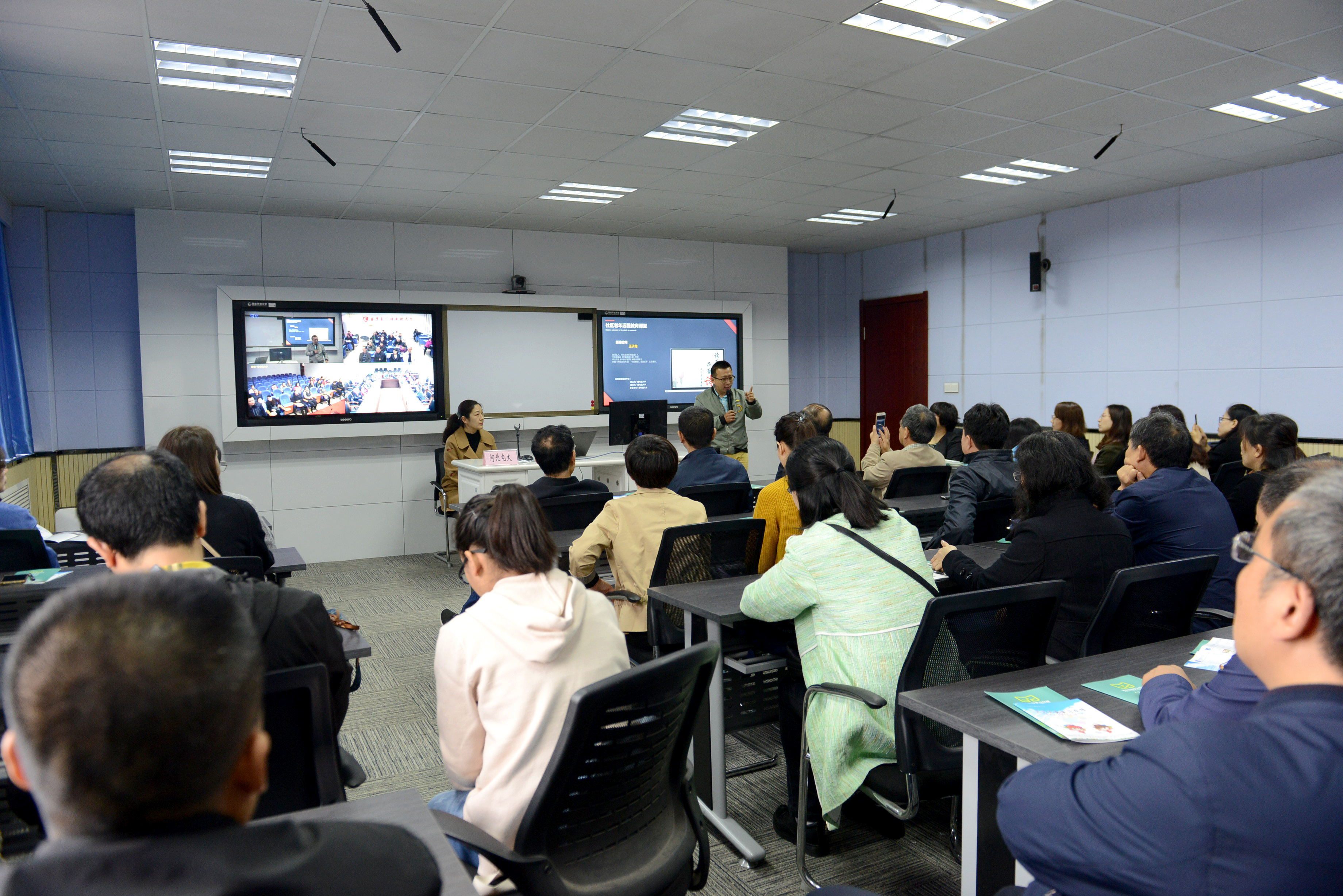 代表團在云教室體驗了“全省一堂課”的老年教育遠程教學模式,與唐山、秦皇島和廊坊三地的老年學員共同參與了一堂視頻公開課。充分展示了電大系統利用最先進的遠程教學手段實現資源共享、線上線下互動教學的新模式。之后,社區教育學院馬少榮院長介紹了近年來河北廣播電視大學系統在推動遠程老年教育工作過程中取得的經驗和成果,重點介紹了我省依托電大系統建立起的社區教育五級辦學網絡和河北終身學習在線的建設和使用情況。隨后,代表團還參觀了遠程教育體驗廳和雙向視頻室。