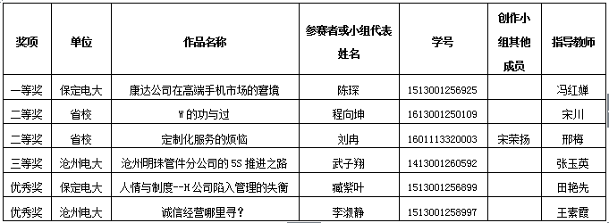 為提升專業(yè)品質,提高人才培養(yǎng)質量,國家開放大學于2017年5月至12月舉辦了工商管理案例設計與分析大賽,經(jīng)專家評審和網(wǎng)上公示,日前結果正式公布。我校在所有獎項中均有斬獲,所選送的10部作品中,一項一等獎,兩項二等獎,一項三等獎,兩項優(yōu)秀獎。我校獲得大賽優(yōu)秀組織獎。保定電大馮紅嬋老師獲得優(yōu)秀指導教師獎。