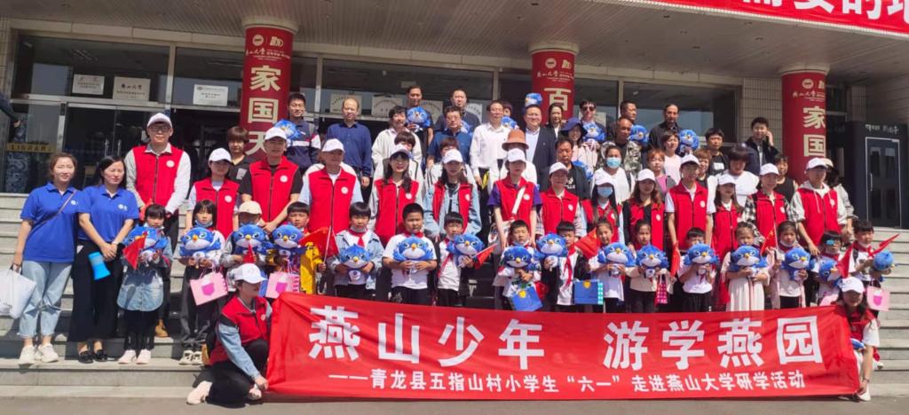 6月1日一大早,五指山小學的大門口就聚集了興高采烈的孩子。今天,他們要跟隨教育部來的羅寧叔叔和秦皇島電大駐村工作隊的叔叔阿姨到燕山大學校園里度過一個難忘的“六一兒童節”。