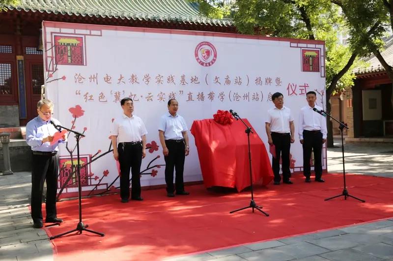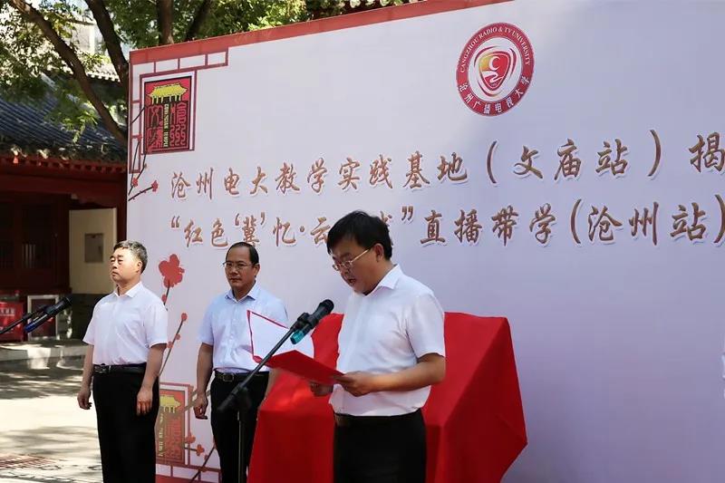 6月4日上午,滄州電大教學(xué)實(shí)踐基地(文廟站)揭牌儀式在滄州文廟舉行,“紅色“冀”憶·云實(shí)踐”直播帶學(xué)(滄州站)活動(dòng)同時(shí)啟動(dòng)。滄州電大黨委副書記、校長崔學(xué)強(qiáng),滄州市文化廣電和旅游局黨組成員、副局長翟成剛出席儀式并為教學(xué)實(shí)踐基地揭牌,翟成剛副局長和滄州電大黨委委員、副校長劉俊民分別在儀式上致辭,滄州電大教研室主任姚小林主持儀式。