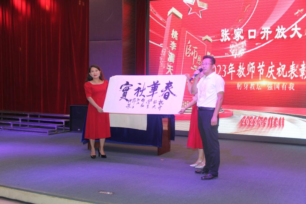 金秋送爽,丹桂飄香。在第39個教師節(jié)來臨之際,為表彰先進,學(xué)習(xí)典型,進一步激發(fā)全體教職員工愛崗敬業(yè)、無私奉獻的熱情,努力辦好人民滿意的教育,9月8日下午,張家口開放大學(xué)舉辦了由校領(lǐng)導(dǎo)和全體教職工參加,以“躬耕教壇,強國有我”為主題的2023年教師節(jié)慶祝暨表彰大會。