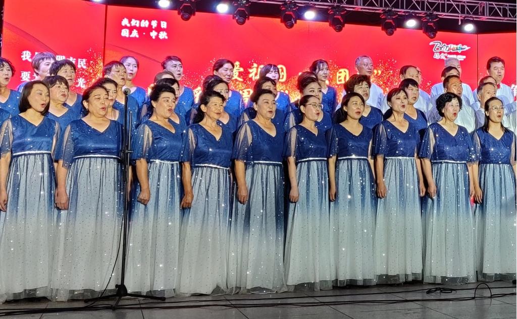 合唱團的成員們個個都精神飽滿、神采飛揚,用昂揚的精神狀態,熱情演繹歌曲《祖國不會忘記》《沒有共產黨就沒有新中國》,表達對祖國的熱愛,迎接國慶的到來?,F場氣氛熱烈,精彩的表演贏得了在場觀眾的熱烈掌聲。