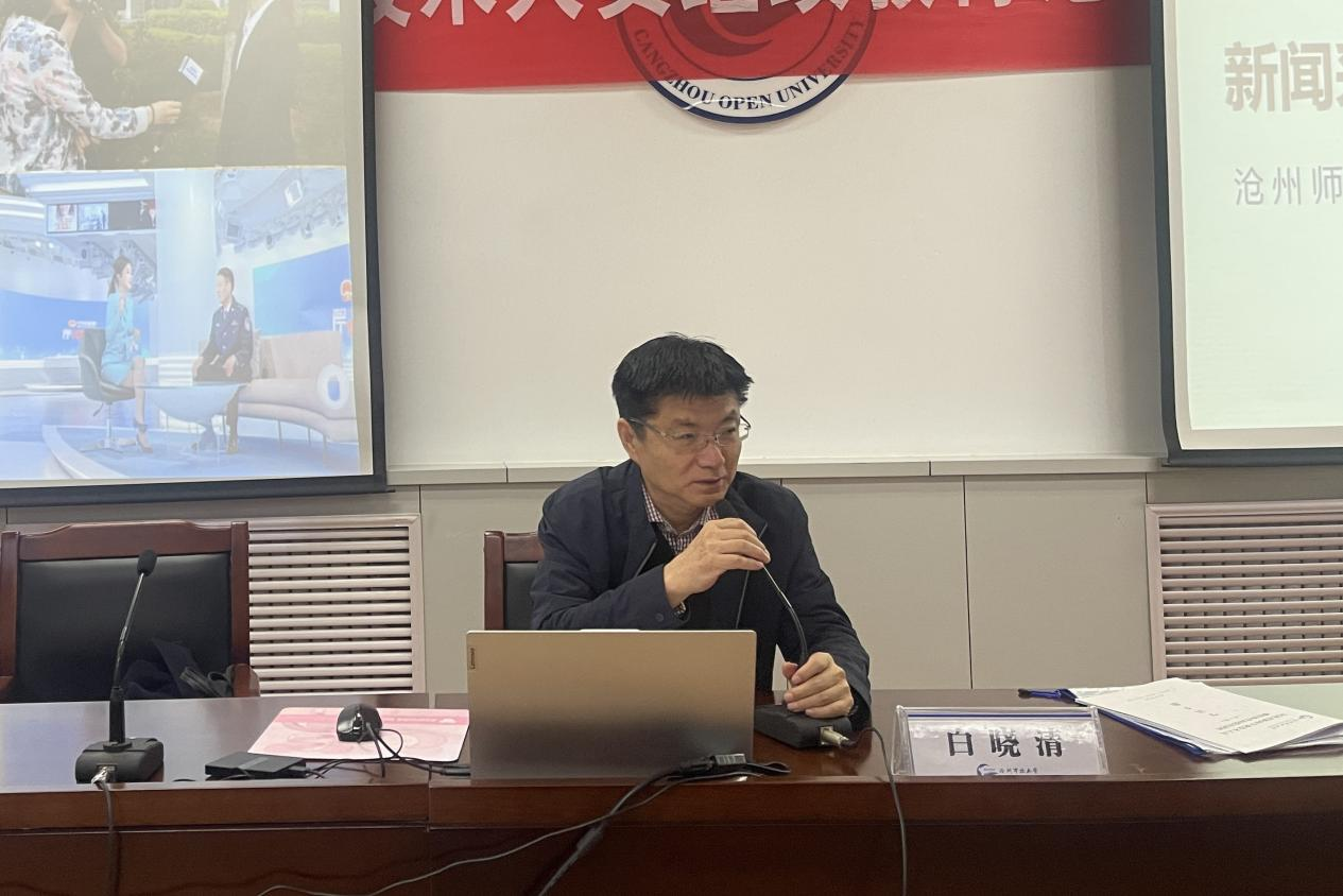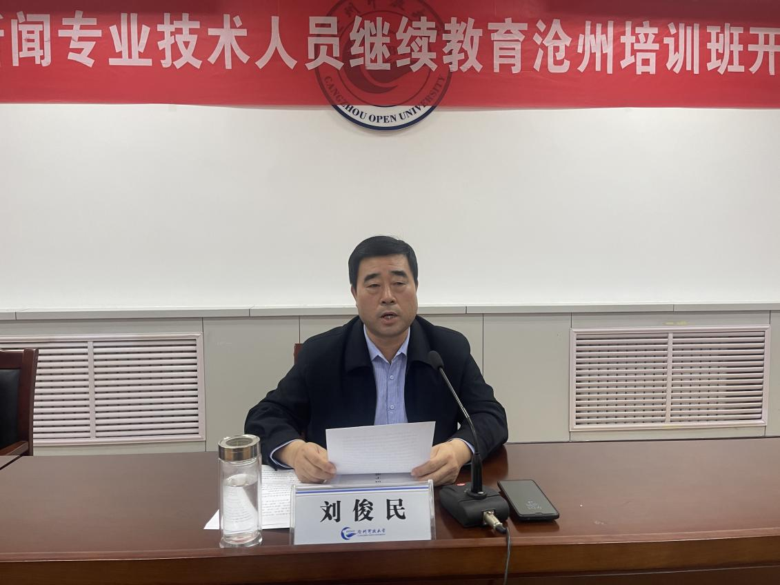 開班儀式恰逢11月8日中國記者節,劉俊民代表學校對參訓學員表示歡迎并致以節日的祝賀。他在簡要介紹了滄州開大辦學情況后向學員提出三點期望:一是認真學習,提升素養。要常懷“本領恐慌”之心、“能力危機”之感,提高認識,端正態度,全身心投入到學習活動中,不斷提升新聞工作的能力和素養。二是學以致用,服務實踐。要堅持黨性原則,秉持人民至上,做好調查研究,堅持守正創新,切實提高黨的新聞輿論傳播力、引導力、影響力、公信力。三是交流互動,共同進步。要從多元的視角加強相互間的學習和交流,博采眾長,相互啟發,共同進步,成為工作上的幫手和生活中的朋友。