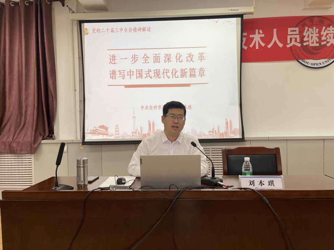 滄州開放大學黨委委員、副校長劉俊民出席開班儀式并致辭,職業教育部主任張福潭主持開班儀式。
