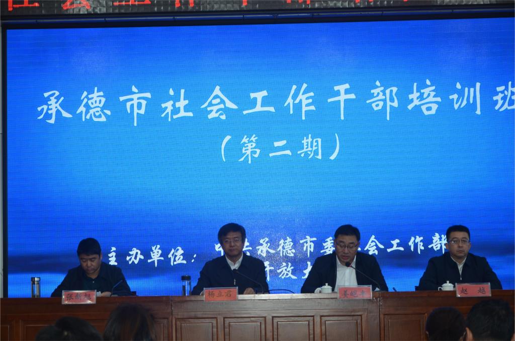 市委社會工作部部長、市委兩新工委書記楊立君,副部長張新旭,承德開放大學校長姜皚豐,副校長趙越共同出席了開班典禮。開班典禮由姜皚豐致辭,楊立君動員講話。