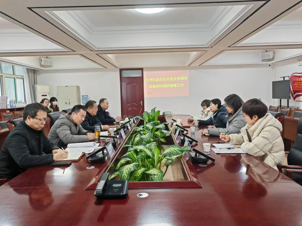 2025年1月4日,河北開放大學黨委副書記徐愛新、河北干部網絡學院平臺管理中心副主任李文娟蒞臨邯鄲開放大學調研指導工作,黨委書記侯希昌、校長張志濤、副校長王立濤及相關部門負責人參加調研匯報。