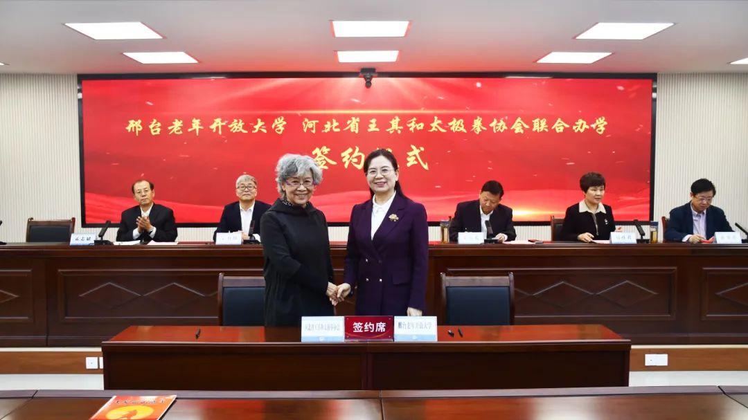 為推動學歷教育與非學歷教育均衡發展,進一步強化老年教育品牌建設,邢臺老年開放大學和河北省王其和太極拳協會合作,成立邢臺老年開放大學王其和太極拳學院,3月15日上午舉辦了揭牌儀式。中國非遺保護協會太極拳專委會副主任、河北省王其和太極拳協會主席檀杏敏,邢臺市委教育工委書記、市教育局黨組書記、局長于京禮,邢臺開放大學黨委書記宗召偉和校長劉彥君出席揭牌儀式,邢臺開放大學領導班子成員、副科級以上干部,以及河北省王其和太極拳協會領導及嘉賓共70余人參加活動。