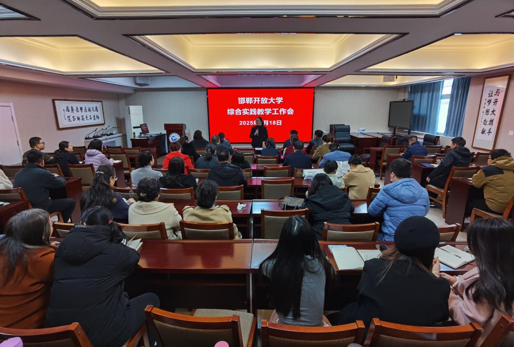 教學科研中心賈翊坤主任主持會議。會議對邯鄲開放大學系統2025年春季學期綜合實踐教學工作進行了安排和布置;組織與會人員學習了綜合實踐教學有關文件;各系(部)主管教師結合所分管專業對《河北開放大學開放教育綜合實踐環節教學實施細則》要求做了解讀并交流了各專業綜合實踐環節教學經驗。會議還對2024年秋季學期綜合實踐評審中發現的問題向有關教學單位做了反饋,并對擬申報綜合實踐指導教師資格的教師開展了培訓。