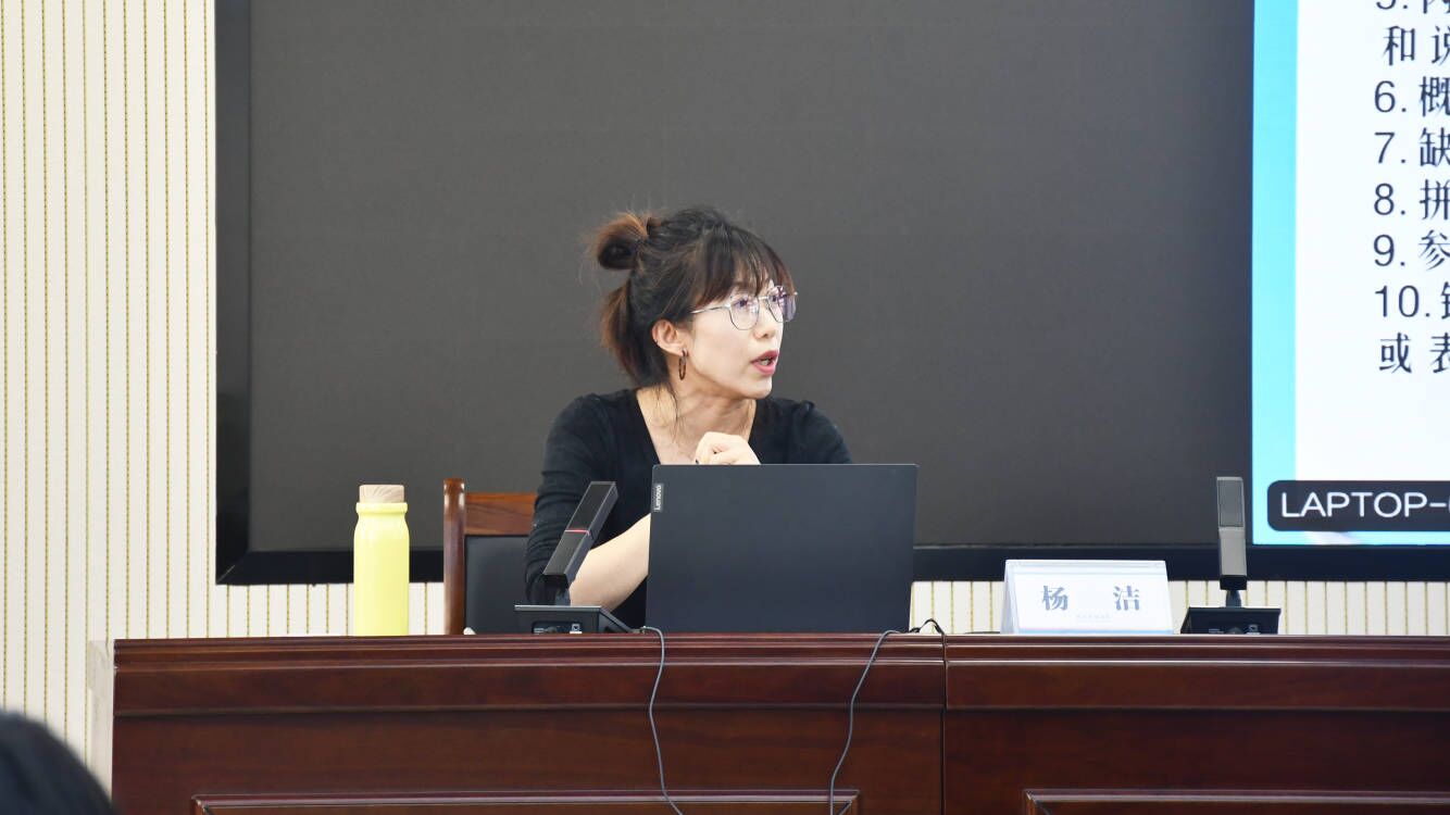 培訓會由邢臺開放大學教務處副主任楊潔擔任主講,她從學位論文申請要求、寫作方法、評審以及國家開放大學最新要求等方面進行了深入講解,還通過實際案例,分享了在指導學生論文過程中遇到的常見問題及解決策略,讓在場教師受益匪淺。