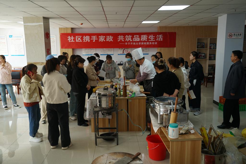 培訓當日,社區活動中心熱鬧非凡,來自不同年齡段的40余名居民踴躍參與。豐寧開放大學邀請著名廚藝大師范慶禮,憑借豐富的實踐經驗和專業知識,為學員進行面點、烹飪等技能培訓。