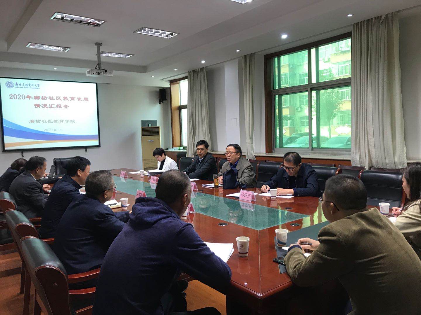 10月14日,省教育廳專家組秦靖祥一行四人到廊坊調研社區教育發展情況。市教育局職成教科科長王開榮,副科長沙鳳林,廊坊電大副校長李琥、副校長姚東升陪同調研并參加座談。