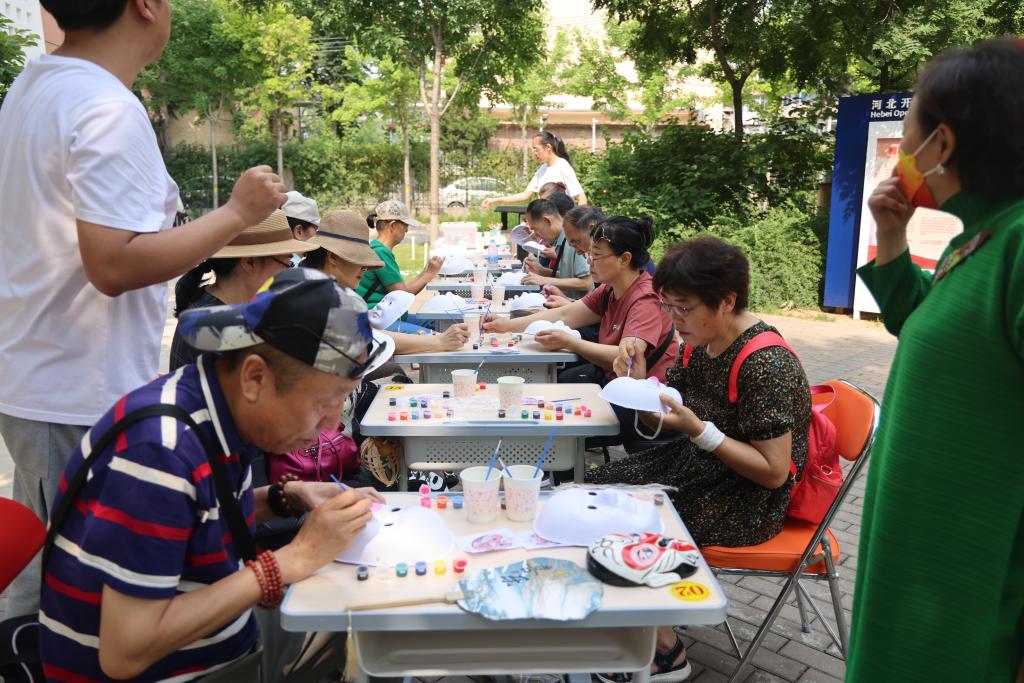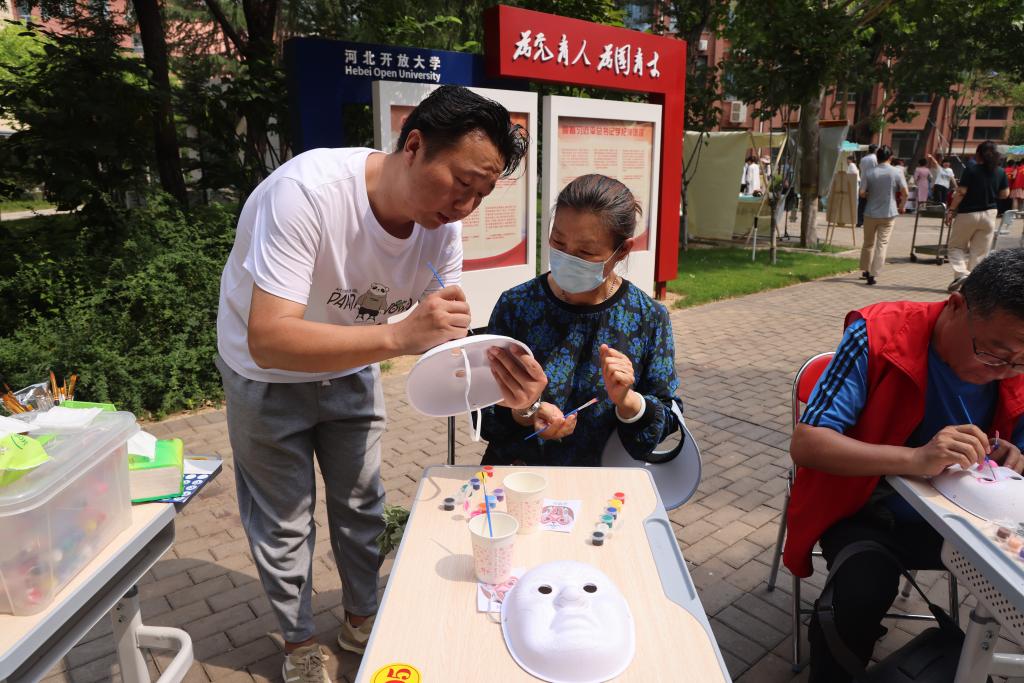為了讓師生更好地了解端午節豐富的文化內涵,活動現場,河北老年開放大學設計了“祈福納吉·五彩香囊diy”、“執扇芳華·手繪漆扇”、“端午花情·制作艾草花束”、“芳香精油·紫草膏”以及“臉譜非遺·傳承千年國粹”等活動攤位。大家有的對端午香囊倍感新奇,有的對手繪團扇情有獨鐘。在老師的詳細指導下,大家穿針引線、研磨提筆,一筆筆地仔細描繪,細心渲染,用繽紛色彩點綴扇面。一邊做手工,一邊聽介紹端午節制作香囊、繪制團扇等習俗來歷。很快,穿針、引線、打結、裝香料、縫合,原本普普通通的布料在一雙雙巧手下,變成了色彩斑斕、形狀各異的香囊。一把把素色的團扇在巧手中描繪出美麗景象,美好家園。開大游園會營造市集體驗,將古風、書香、文化巧妙融合,豐富多彩的活動盡顯傳統文化和開大文化的融合之美。