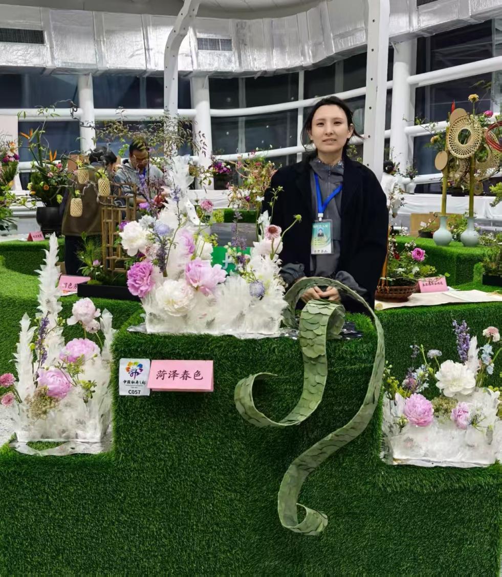 近日,來自河北開放大學玉成社區教學點的學員任紅果,憑借精心創作的花藝作品《菏澤春色》在“花開盛世”2025中國牡丹之都(菏澤)全國牡丹賽花會上斬獲銀獎。