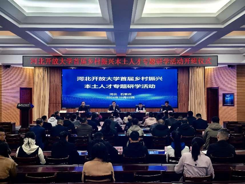 10月22日上午,河北開放大學(xué)首屆鄉(xiāng)村振興本土人才專題研學(xué)活動(dòng)開班儀式在智學(xué)樓終身教育大講堂隆重舉行。學(xué)校黨委常委、副校長陳軍平、中共河北省委黨校馬克思主義學(xué)院副教授付丁丁、鄉(xiāng)村振興學(xué)院(農(nóng)醫(yī)學(xué)院)院長白增立、副院長杜志剛出席開班儀式。杜志剛主持開班儀式。陳軍平發(fā)表熱情洋溢的致辭。首先,他代表河北開放大學(xué)對(duì)參加研學(xué)活動(dòng)的全體師生表示熱烈地歡迎和誠摯地問候!然后,他總結(jié)了舉辦河北省農(nóng)村“兩委”干部學(xué)歷教育所取得的豐碩成績并指出,舉辦此次研學(xué)活動(dòng)是學(xué)校深入貫徹落實(shí)黨的二十屆三中全會(huì)精神,深化教育教學(xué)改革,探索多元化教育服務(wù)模式的創(chuàng)新舉措,是落實(shí)省委組織部關(guān)于高質(zhì)量推進(jìn)農(nóng)村“兩委”干部學(xué)歷教育工作部署的具體行動(dòng)。最后,他對(duì)大家提出幾點(diǎn)要求:一是提高認(rèn)識(shí)。大家要充分認(rèn)識(shí)研學(xué)活動(dòng)的重要意義,珍惜來之不易的學(xué)習(xí)機(jī)會(huì),將其作為提升自身能力、推動(dòng)工作發(fā)展的重要契機(jī)。要切實(shí)增強(qiáng)學(xué)習(xí)的自覺性和主動(dòng)性,以飽滿的熱情、積極的態(tài)度投入到學(xué)習(xí)中,做到學(xué)有所思、學(xué)有所獲。二是加強(qiáng)交流。大家要保持謙虛的態(tài)度,虛心向?qū)<覍W(xué)者請(qǐng)教,向身邊的同學(xué)老師學(xué)習(xí),豐富自己的知識(shí)儲(chǔ)備和工作經(jīng)驗(yàn)。在教師論壇和學(xué)生論壇中,積極交流思想,碰撞智慧,分享拓寬發(fā)展視野,將所學(xué)知識(shí)、經(jīng)驗(yàn)和技能運(yùn)用到實(shí)際工作中。三是遵守紀(jì)律。大家在研學(xué)期間要嚴(yán)格遵守學(xué)校各項(xiàng)規(guī)章制度和學(xué)員守則,按時(shí)參加各項(xiàng)課程和活動(dòng),不遲到、不早退、不曠課、不飲酒。要尊重老師,團(tuán)結(jié)同學(xué),積極營造良好的學(xué)習(xí)氛圍,以優(yōu)良的作風(fēng)展示同志們良好精神風(fēng)貌。
